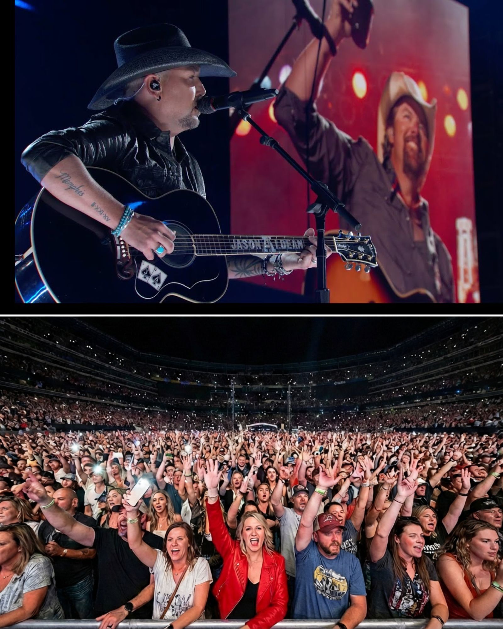 Jason Aldean walked out without a guitar. No grin, no quick wave to get the noise going. He didn’t rush to fill the silence, because it wasn’t the kind of silence you cover up. It was the kind you stand inside for a second and let the crowd realize what it’s holding.