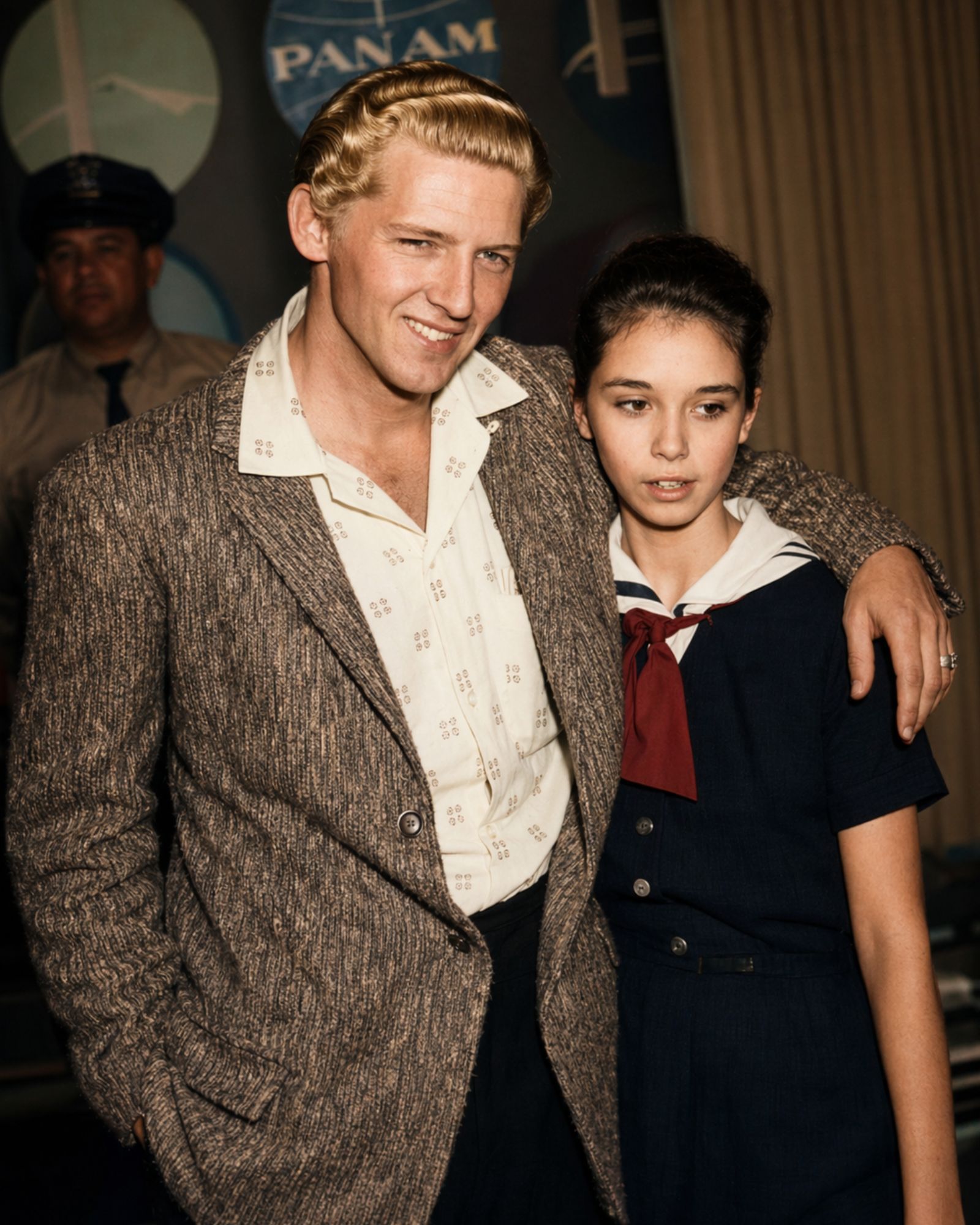 At the airport, British reporters noticed the very young girl traveling with Jerry Lee Lewis and asked who she was. The answer was simple and explosive. Myra Gale Brown said she was Jerry Lee Lewis’s wife. The story spread almost instantly, and the reaction was savage. Myra Gale Brown was only 13. Jerry Lee Lewis was 22. Worse still, the marriage had taken place before the divorce from Jerry Lee Lewis’s previous wife was fully settled. To the public, the scandal was not complicated. It was shocking, and it was enough to blow apart a career in days.