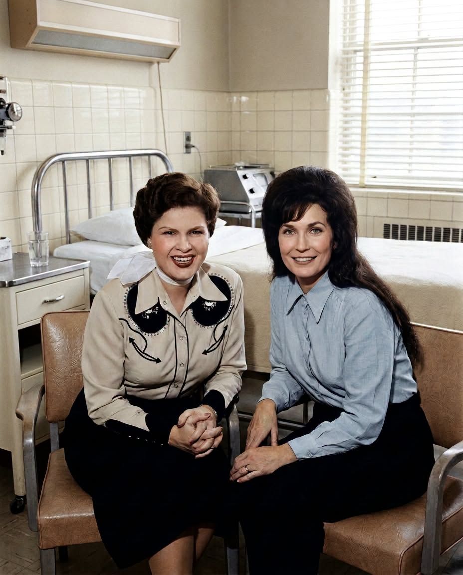 Imagine that moment. A newcomer with nerves hidden behind politeness. A hospital room heavy with the smell of medicine, flowers, and worry. Patsy Cline injured but sharp-eyed, already known for being tough, funny, and impossible to forget. Loretta Lynn was still finding her place in country music. Patsy Cline had already fought for hers.