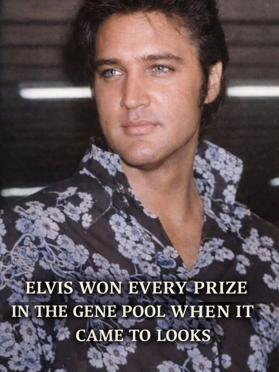 “Elvis won every prize in the gene pool when it came to looks.” It is a sentence that has echoed for decades, not because it flatters, but because it feels true. One glance at Elvis Presley, especially in his early years, explains why words often failed people. There was something arresting about him, something that made you stop before you even realized you were looking.His blue eyes carried a rare intensity, gentle and piercing all at once. His cheekbones were sharply defined, his features almost sculpted, as if shaped with intention. Even his smile felt personal, reaching across crowded rooms and landing softly on whoever met his gaze. His dark hair, carefully styled yet never stiff, became as iconic as his voice. Elvis was not simply handsome. He moved with an ease and quiet confidence that drew people toward him without effort.