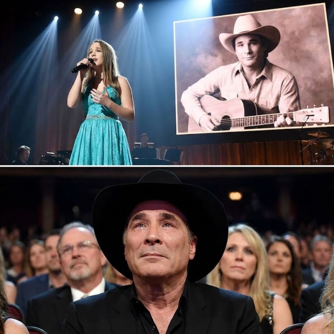 Clint Black was off to the side, not hidden, but not centered either. He didn’t step forward. Clint Black didn’t reach for the microphone. Clint Black didn’t smile in that “let’s put on a show” way. Clint Black stood still with his hands folded, watching as his daughter began the first verse.
