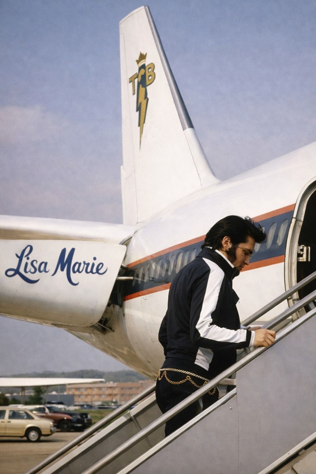 In this photograph, Elvis Presley is seen stepping toward the staircase of the aircraft that would soon become one of the most personal symbols of his life. The plane was called the Lisa Marie, named after his beloved daughter Lisa Marie Presley. The date was November 27, 1975, and the moment marked something special. It was the first time Elvis would travel aboard the jet that carried her name, departing for Las Vegas for a demanding concert engagement at the Las Vegas Hilton.