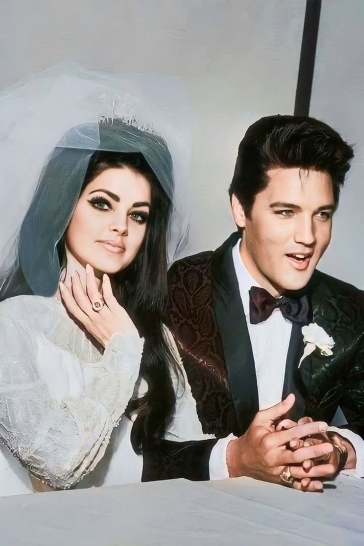 Elvis arrived looking timeless in a sleek black tuxedo, his eyes soft with a warmth rarely seen outside of private moments. For once, he was not the global superstar, not the man chased by cameras and adoring fans, but simply a man deeply in love. Priscilla, only twenty-one, entered the room in a lace gown that seemed almost weightless, her veil flowing behind her like a trail of light. The way Elvis looked at her — gentle, steady, almost overwhelmed — became one of the most cherished memories of that day.