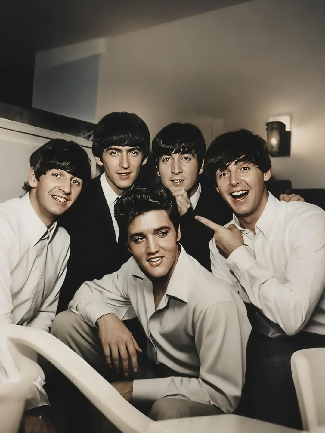 What makes that night so unforgettable is not that Elvis and The Beatles finally met — but that no cameras documented it. No tape recorders, no film, no crowd. Just memory. Just a handful of people lucky enough to witness the greatest rock and roll dream imagined, happening as naturally as friends gathering after a long day. For a few hours, there were no crowns, no charts, no comparisons. Only five musicians sitting in a circle, lifting each other up, sharing the pure spirit of the music that had shaped them all.