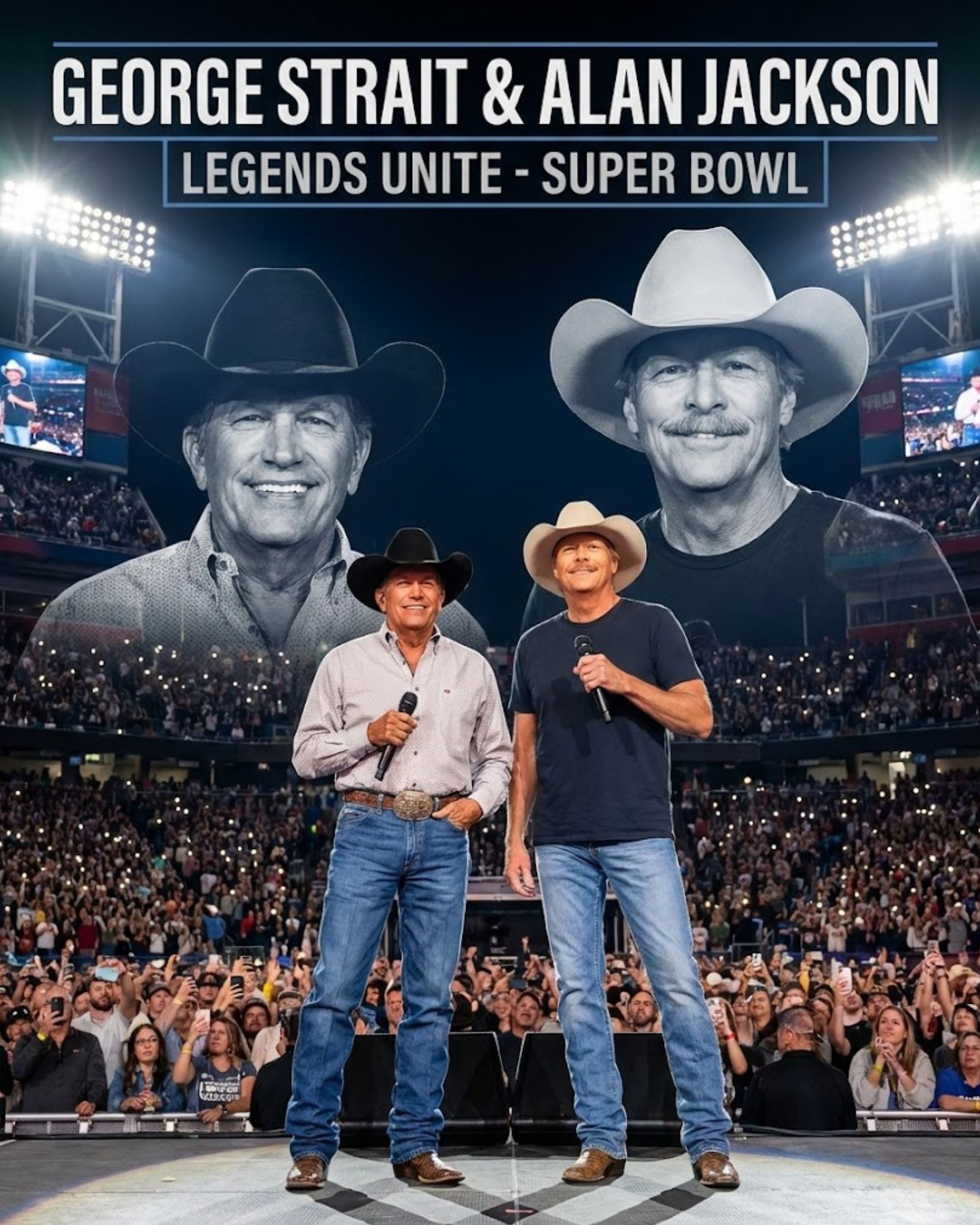 Super Bowl 2026 will go down in history not for the game played on the field, but for the moment two giants stood tall and reminded the world of the power of three chords and the truth. They didn’t just play a show; they brought the country back to the city. And for one night, the King of Country and the Man from Newnan, Georgia, ruled the world together.