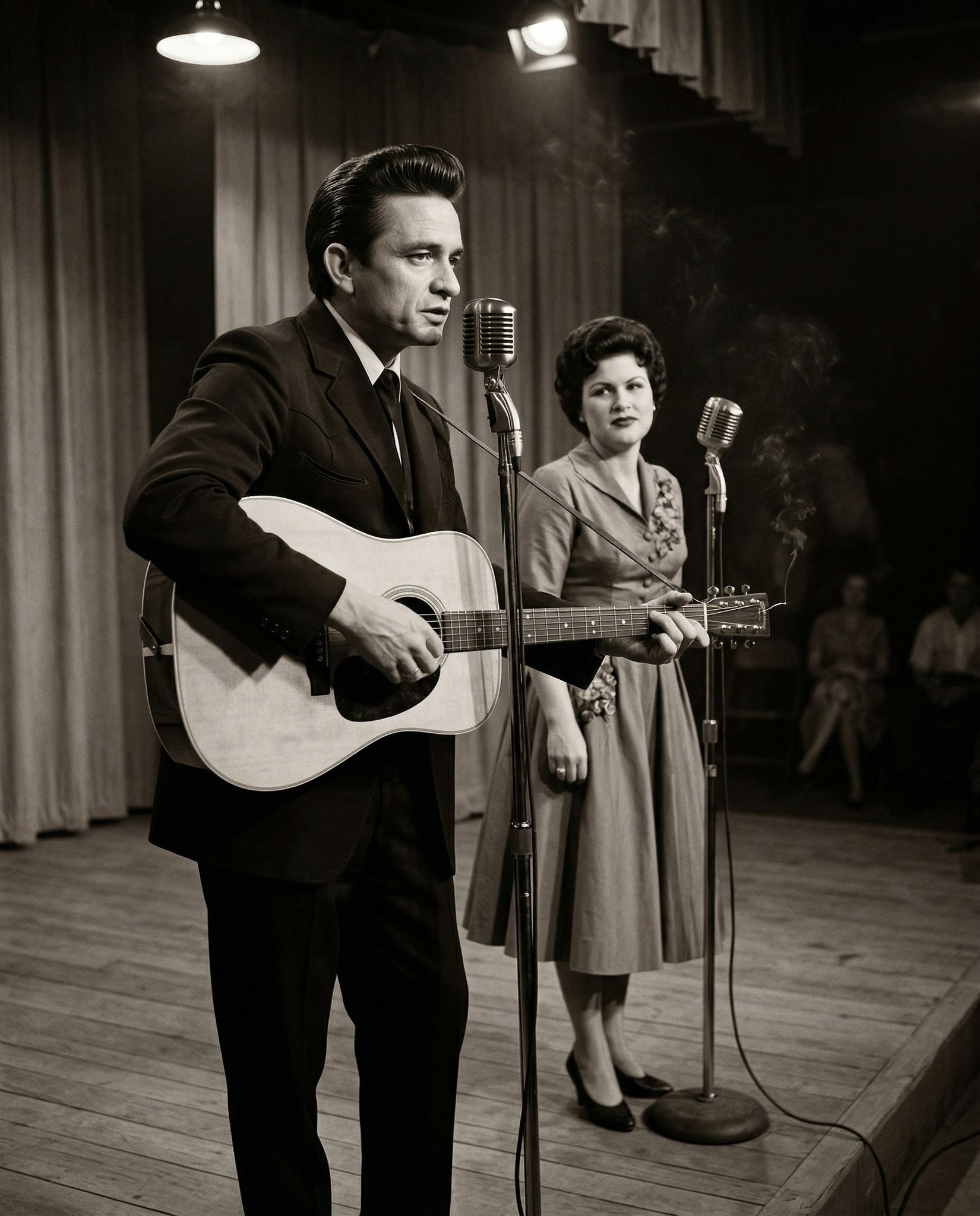 So when people look back at that humble stage and say they can feel something changing, they are not imagining it. They are seeing the moment before the future had a name. A room lit by simple lights. Heavy shadows. A young Johnny Cash. A luminous Patsy Cline. And somewhere in the silence around them, country music getting ready to become larger than anyone in that crowd could have known.