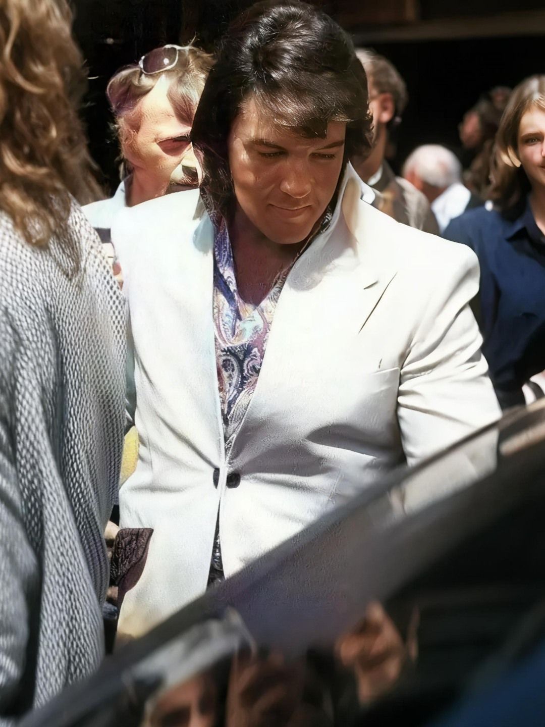 The first time he walked into the spotlight, the reaction was electric. It wasn’t just applause; it was instinct, shock, awe—like the air itself tightened around him. Fans screamed until they couldn’t breathe, and photographers scrambled for any glimpse they could catch. Other entertainers, even the most confident ones, suddenly felt small standing next to him. When the Beatles met him years later, they privately agreed on one thing: Elvis carried a presence you could feel before he even spoke. He didn’t dominate the room—he transformed it.