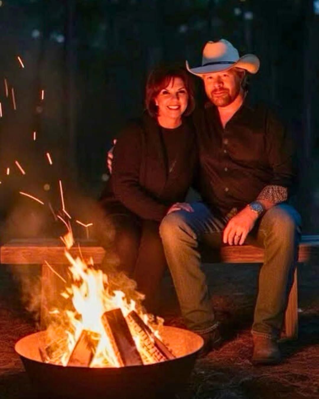They said Toby Keith could set the stage on fire. And maybe he could — every night, in front of thousands, his voice carried that mix of pride and defiance that made him an American legend. But the truth is, the brightest fire he ever knew wasn’t under the stage lights. It was this one — glowing quietly in the woods, with her by his side.