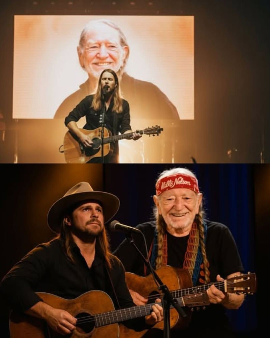 There are rare moments in music that feel less like performances and more like living memory — moments when the past, the present, and something timeless gather in one breath. That is exactly what happened the night Lukas Nelson stepped onto the stage to debut a song he had written together with his father, the legendary Willie Nelson. What followed was not simply a premiere; it was a tribute, a reflection, and a blessing shared through the warm, familiar bond of family.