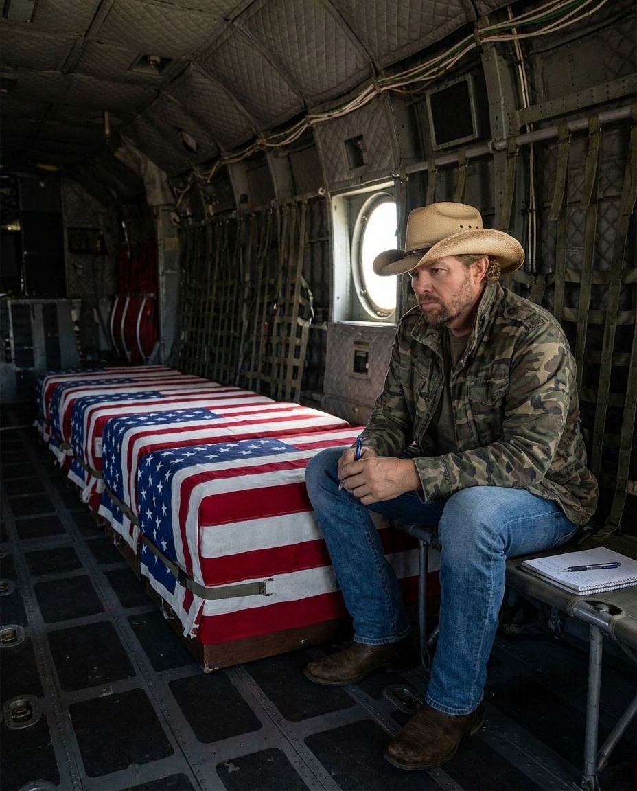 That is the story often told about Toby Keith and “American Soldier.” Not as a polished industry anecdote, but as something much more personal. A memory from a flight home. A silence inside a military plane. Four flag-draped coffins. And a country star who had already seen enough to know that some scenes stay with you forever.