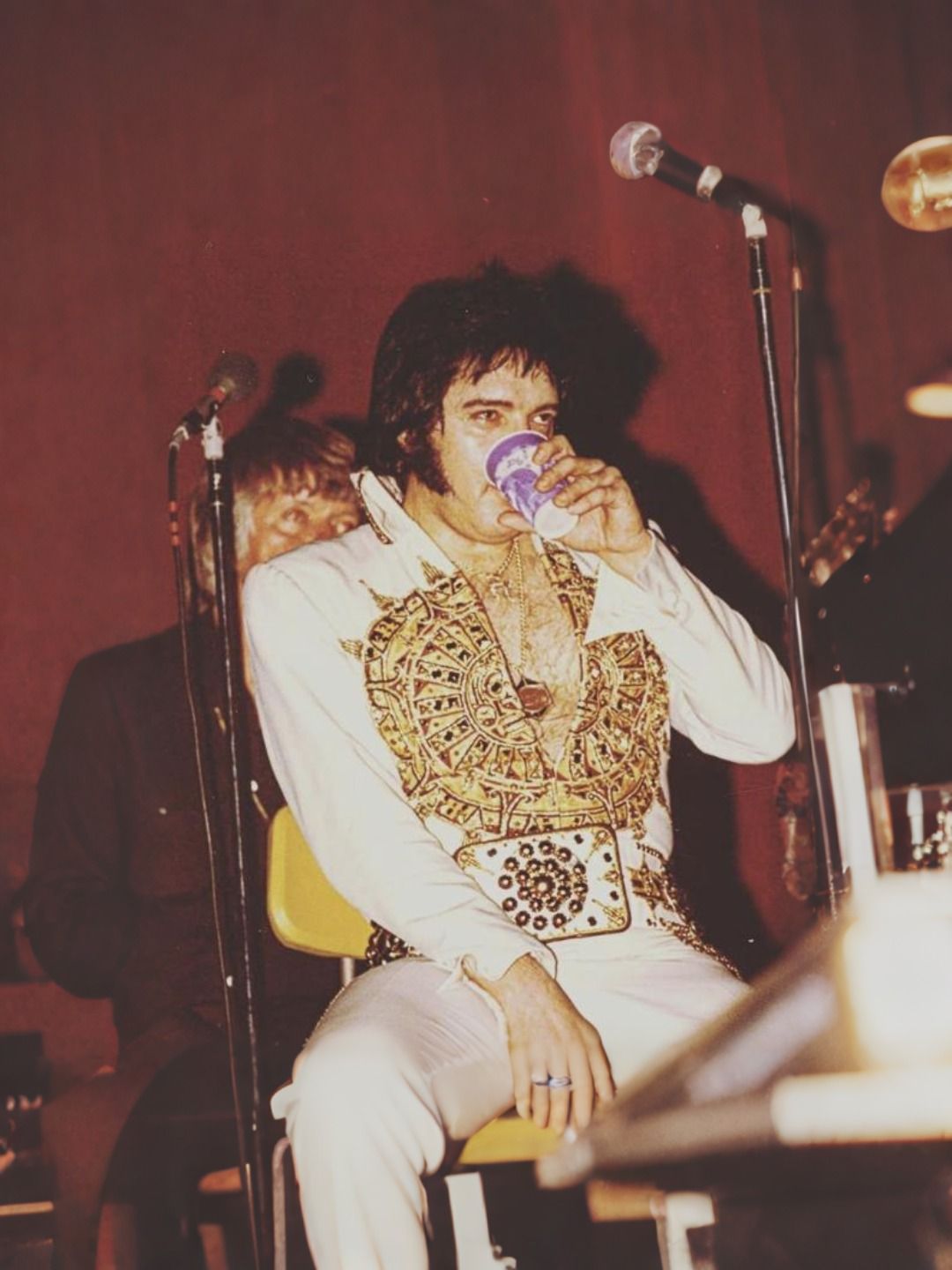 In the final years of his life, Elvis was still performing before thousands, smiling through pain that most people would never imagine. Cameras captured him sweating under hot lights, struggling to remember lyrics, leaning heavily on his band. Fans didn’t know they were witnessing a man fighting his own failing body, doing everything in his power to give them one last glimpse of the magic he carried for decades. Behind the glitter, there was exhaustion, fear, and a loneliness no stage could hide.