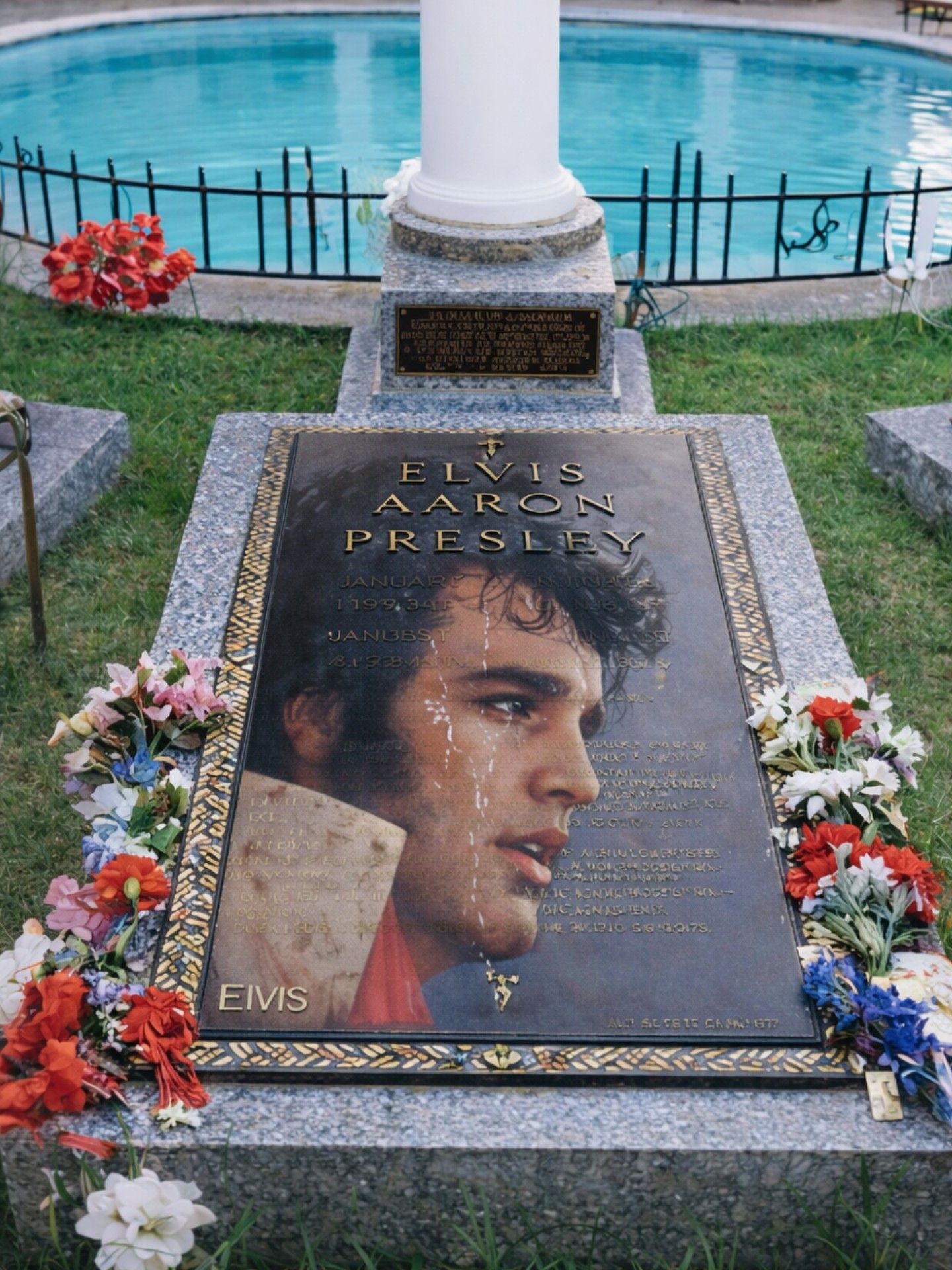 With official permission granted, a quiet decision was made. On October 2, 1977, Elvis and his beloved mother Gladys Presley were reburied at Graceland. In the Meditation Garden behind the house, surrounded by trees, memories, and love, Elvis was finally placed where he belonged. Not in marble grandeur, but in the heart of his family’s sanctuary.